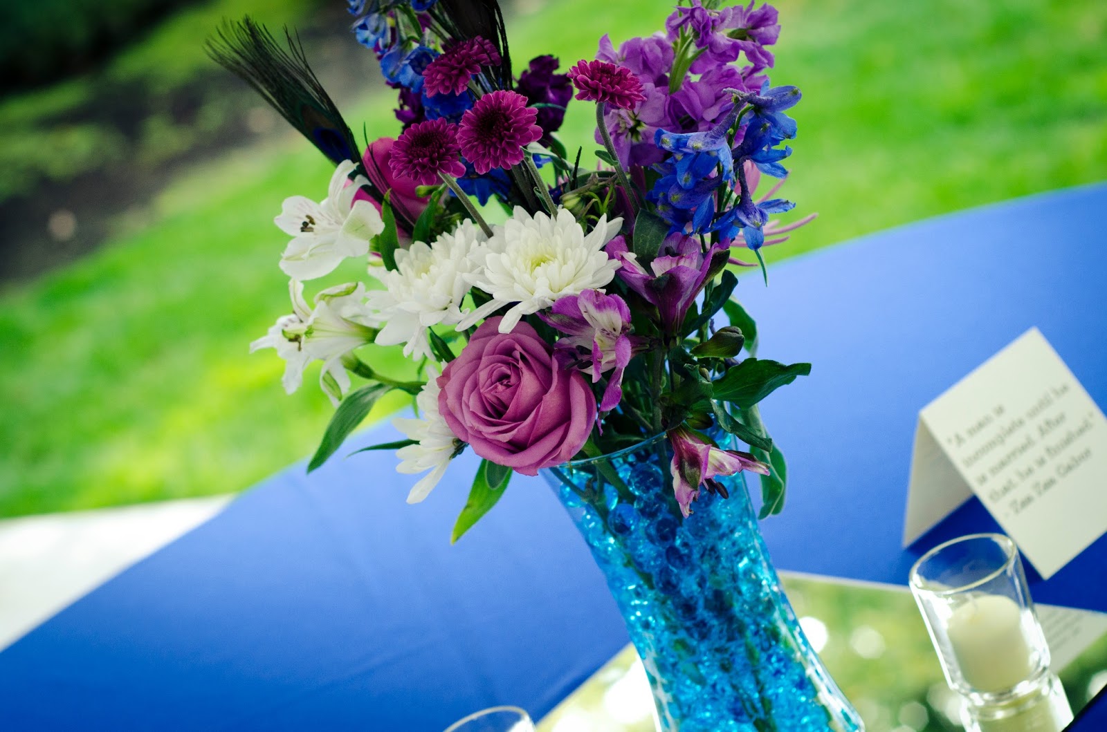 We had these cards (two on each table) that have funny wedding sayings on them, like, "I was married by a judge. I should have asked for a jury. -Groucho Marx". And, "A man in love is incomplete until he has married. Then he's finished. -Zsa Zsa Gabor